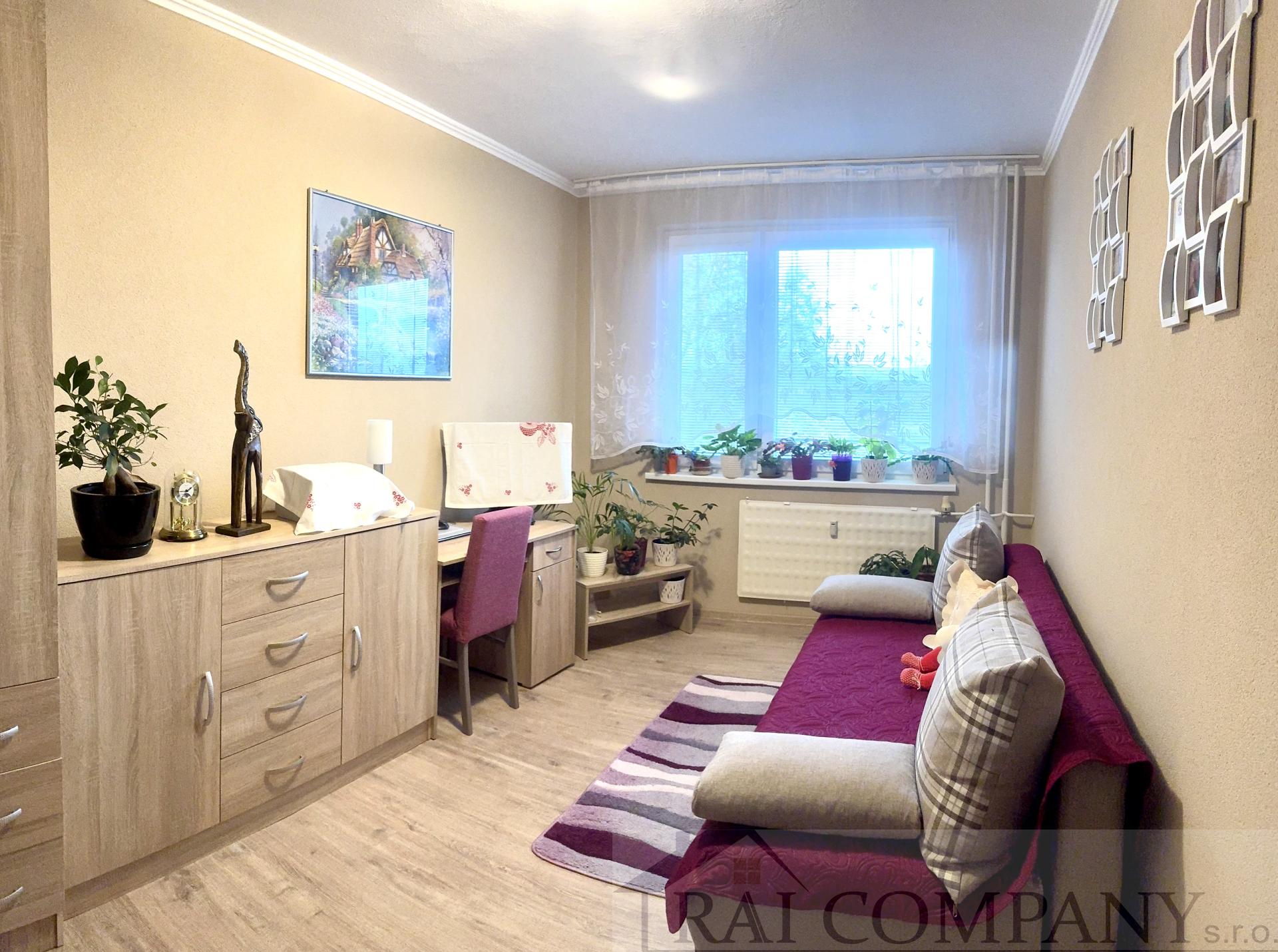 Predáme, veľkometrážny 3- izbový byt s uzavretou loggiou - 77 m2. Nachádza sa na ideálnom 5 poschodí bytového domu s výťahom. Orientácia kuchyňa a obývačka JZ, spálňa a detská izba SV. Z okien je krásny výhľad na okolie čo dodá bytu dostatok svetla a relaxu.